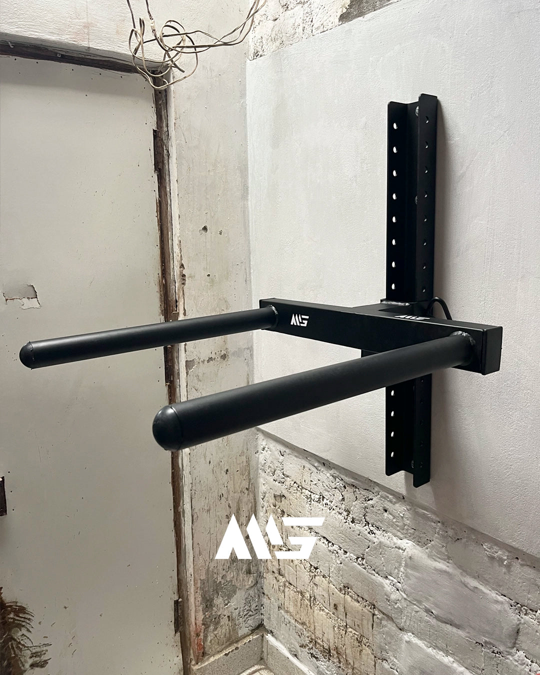El Soporte de Pared MIG es un sistema modular diseñado para quienes buscan optimizar su espacio de entrenamiento en casa o gimnasio. Fabricado con acero de alta resistencia y corte láser de precisión, este soporte permite instalar accesorios como paralelas desmontables, barras y otros implementos funcionales para calistenia o entrenamiento de fuerza.